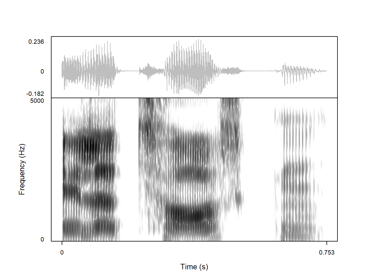The spectrograms produced by praatpicture are by default similar to those produced by Praat, but users have a lot of options regarding both the general appearance of spectrograms and the underlying signal processing. We’ll cover those options here.